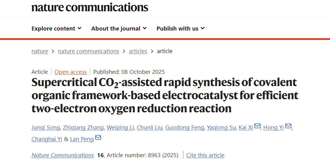 【学术聚焦】我校易长海教授团队彭兰博士课题组发表共价有机框架材料快速合成与电催化应用新成果