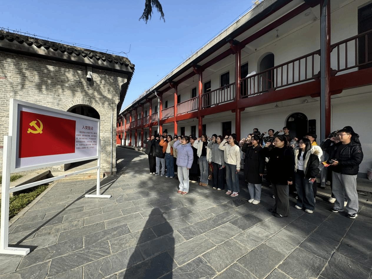 抵达首站中共五大会址纪念馆后,党员们在讲解员的引导下认真参观馆内陈列,回顾波澜壮阔的革命历程。在庄严肃穆的氛围中,全体党员重温入党誓词,进一步坚定初心使命。