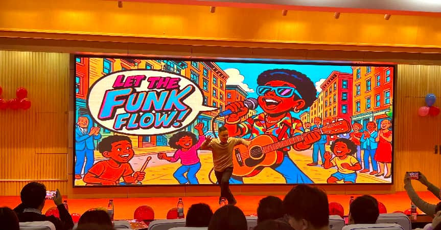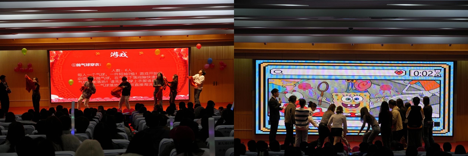 晚会期间穿插的互动游戏与抽奖环节,进一步增进了师生情谊。抛气球穿衣、听歌识曲等趣味游戏吸引全场参与,三轮抽奖送出丰厚奖品,现场欢呼声不断。最后,全体师生合唱《相亲相爱》,在温馨旋律中为晚会画上圆满句号。
