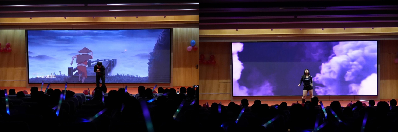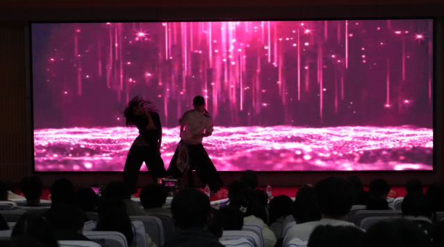 随后的联欢晚会节目精彩纷呈,开场舞《活力青春》由技术研究院师生共同演绎,整齐划一的动作迅速点燃现场氛围;歌曲《我们的爱》深情诠释师生情、同窗情,引发全场共鸣;小品《如此科研》以幽默笔触再现实验室日常,让师生在欢笑中感受科研人的坚守与不易;歌舞串烧《青苹果乐园》《爱如火》融合经典与潮流,将气氛推向高潮。此外,悠悠球表演、双人舞《I Need a Girl》等节目轮番上演,展现了三院学子的多元才艺与青春风采。