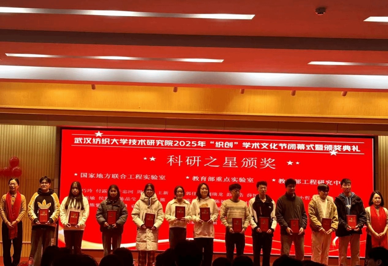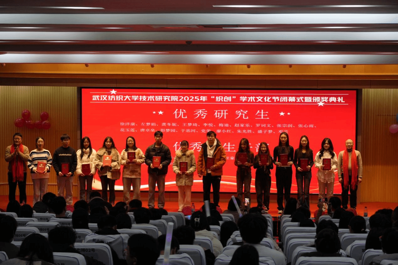 作为晚会核心环节,隆重举行了“织创”学术文化节颁奖典礼。该文化节旨在搭建跨学科交流平台,激发研究生科研创新活力,通过学术讲座、科创竞赛、成果展示等系列活动,累计吸引500余名学子参与,产出高质量学术成果20余项,有效提升了研究生的科研实践能力与团队协作精神。