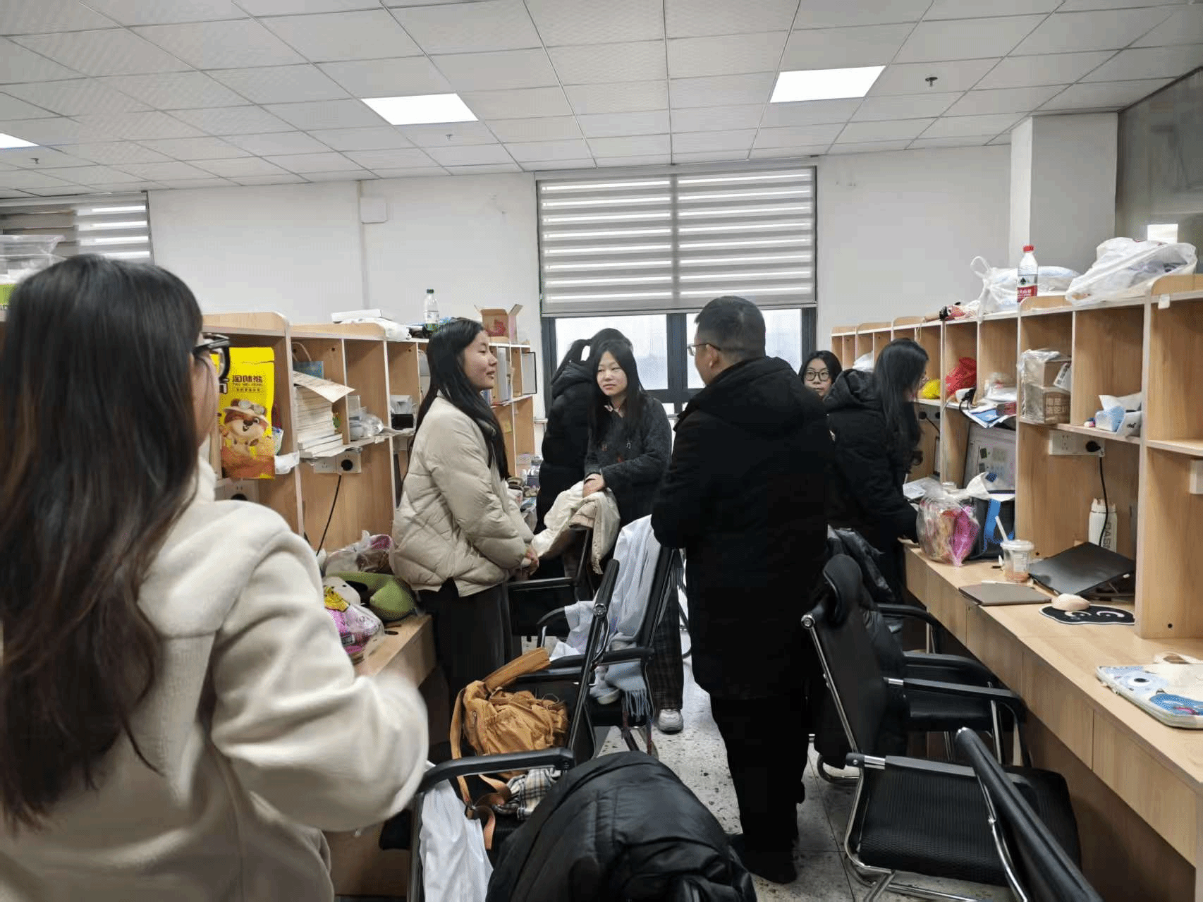 慰问过程中,老师们走进学生办公室,看望正在埋头学习和科研的同学们,关切询问每位留校学生的假期安排、科研进展以及生活中遇到的困难。了解到大家多因推进科研项目、撰写学术论文、备战学科竞赛等原因选择留校,老师们对同学们不畏严寒、潜心钻研的精神给予了充分肯定和鼓励。