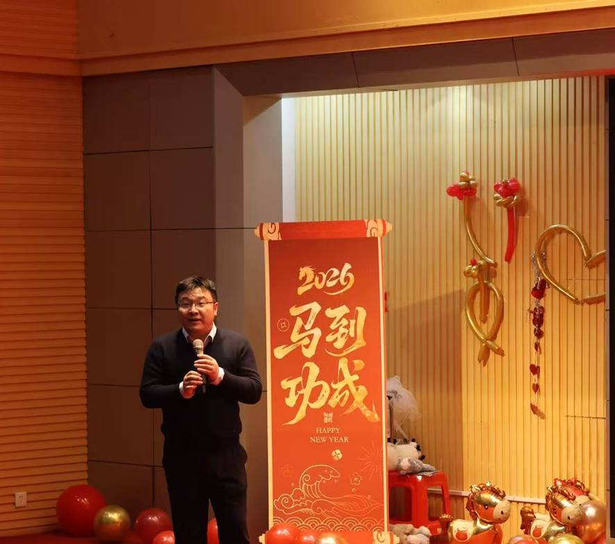 大会伊始,实验室主任王栋教授致开场辞。他首先代表实验室向全体师生员工及家属致以诚挚的新春问候,并系统回顾了实验室2025年在科研创新、团队建设与社会服务等方面取得的突出成果。在肯定成绩的同时,王栋教授也对同学们提出了殷切期望。他强调,“锐始者必图其终,成功者先计于始”,勉励大家在新的一年中明确目标、科学规划、积极行动。他特别寄语即将毕业的同学,将所学转化为职业发展的扎实动力;鼓励在读同学珍惜光阴,在学术研究、人格修养与社会实践等方面全面提升。最后,王栋教授以“山海寻梦不觉其远,前路迢迢阔步前行”与全体师生共勉,并祝愿大家在新的一年里龙马精神、奋勇争先、再创佳绩。