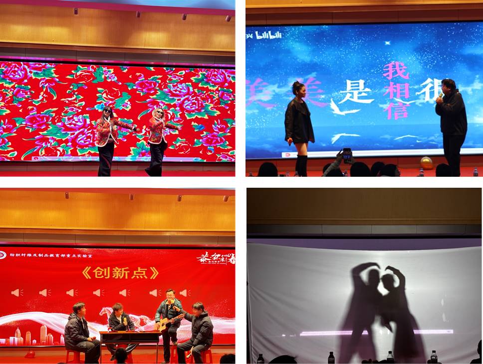 年会文艺表演形式多样、精彩纷呈。歌舞、小品、朗诵、钢琴独奏、光影剧、配音节目等轮番上演,既有《铁锅炖爵士》《素颜》等活力四射的歌舞,也有《时间都去哪了》《创新点》等创意十足的节目。